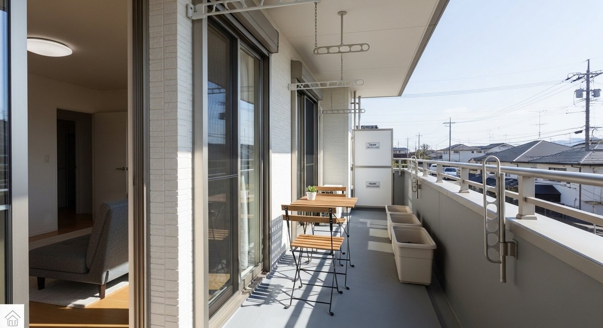 具体的には、窓から出てすぐの場所に洗濯物を干すスペースを確保しつつ、その奥や横にくつろぎの椅子を置くといった「ゾーン分け」が可能になります。作業をする人と休憩する人が同時に存在しても、お互いの動きを邪魔しないのがこのサイズの仕組み的な強みです。回遊性を持たせることで、バルコニー自体の使い勝手は向上します。