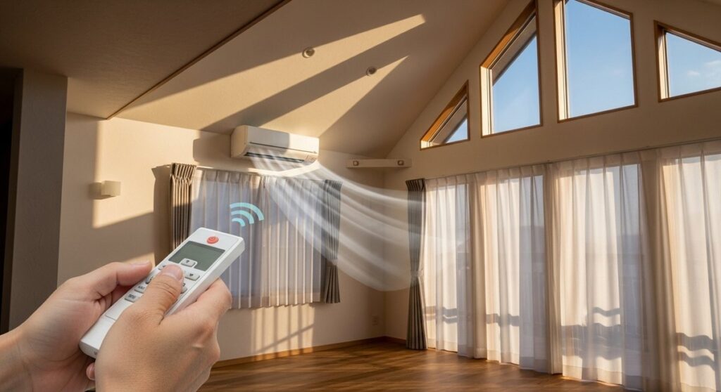 勾配天井の部屋でエアコンを効率よく効かせるための設置ポイントを紹介します。容量不足や温度ムラを防ぐ機種選びから、シーリングファンの活用法まで分かりやすくまとめました。足元の寒さやメンテナンスのしにくさといった失敗を避け、開放的な空間で快適に過ごすための対策を確認しましょう。 -