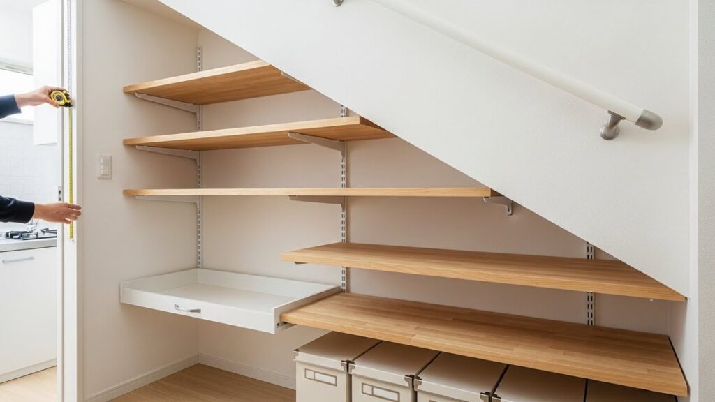 階段下収納の斜め天井をDIYで活かすコツ|採寸と棚づくり