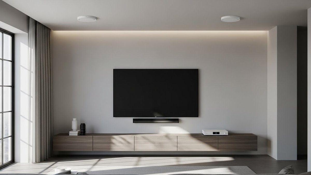 映画中心なら、構成の考え方が重要です。センターは前方、低音はサブウーファー、天井はサラウンド補助という役割分担にすると満足度が上がりやすいです。これにより方向感と迫力を補いながら、見た目のすっきり感も保てます。