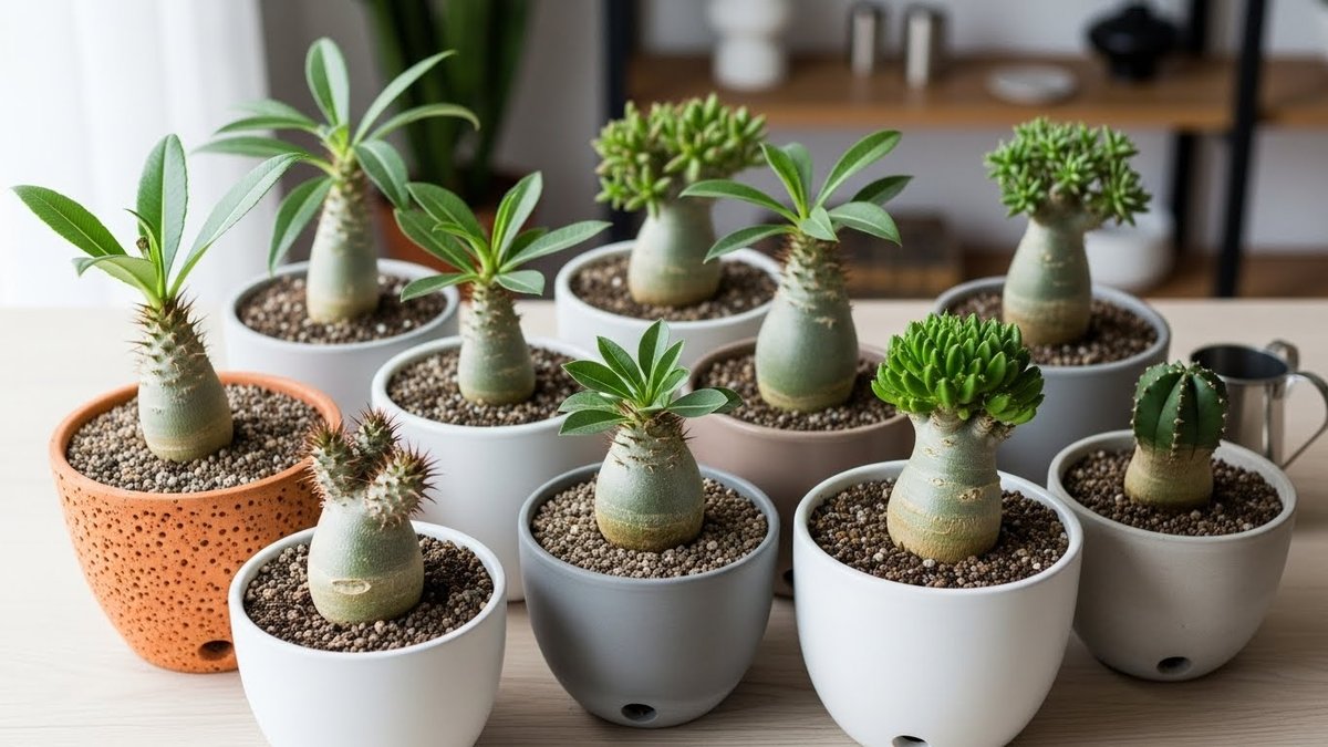 陶器鉢や伝市鉢は色や形でコーデックスを引き立てます。釉薬の光沢や土の質感は幹肌や葉の色と相性が良く、インテリアとしての存在感が増します。和風の空間にも馴染みやすい点が魅力です。