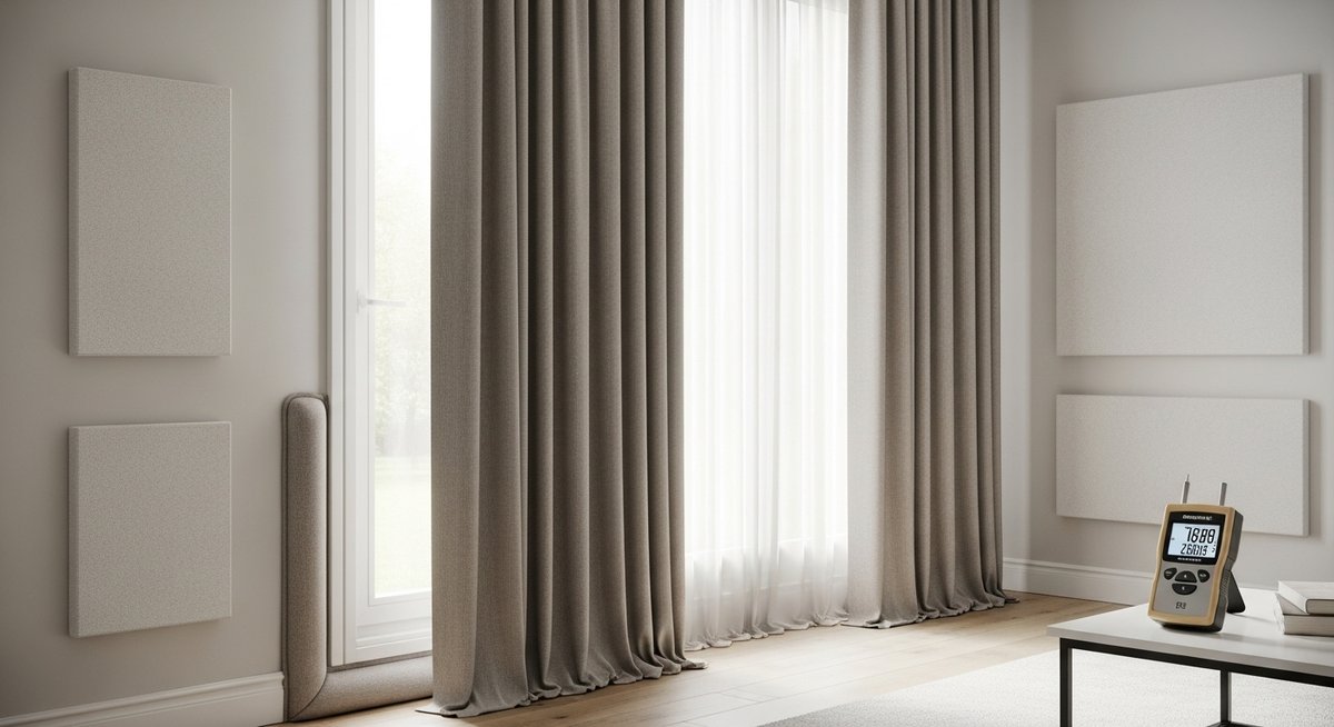 窓からの音漏れを手軽に防ぐなら、防音カーテンが第一候補です。特殊な織り方や金属コーティングを施した生地が、空気を伝わる音を跳ね返し、室内の反響を抑えます。選ぶ際は、隙間ができないように窓枠よりも一回り大きく、床に届く長さのものを選ぶのがコツです。
