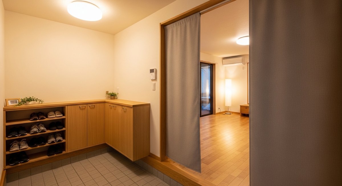 仕切りアイテムは面積が大きいため、リビングの印象を左右する重要なインテリア要素にもなります。寒さ対策という機能面はもちろん大切ですが、お部屋の雰囲気を壊さないデザインを選ぶことで、視覚的にも心地よい空間を作ることができます。玄関を開けた瞬間に目に入る場所だからこそ、家の「顔」としての美しさにもこだわりましょう。