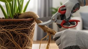 植え替え時は根を優しく扱うことが大切です。古い根が絡んでいる場合は無理に引き抜かず、ぬるま湯でやわらかくしてからほぐすと傷みにくくなります。切る場合は清潔なはさみで斜めにカットすると回復が早くなります。