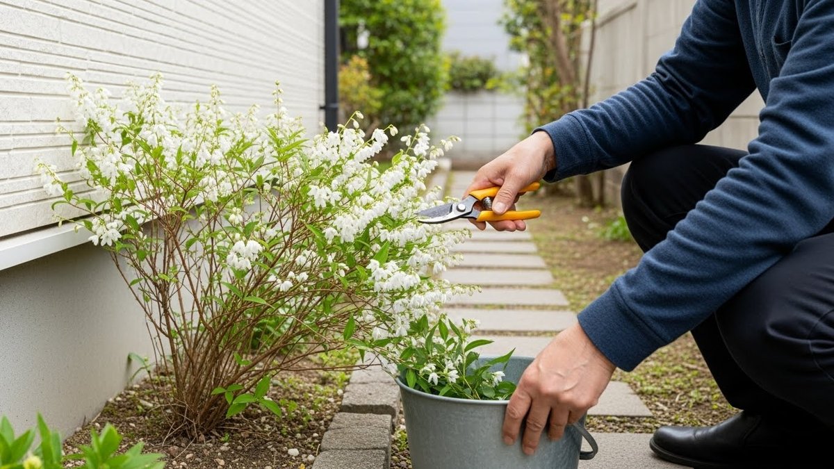 負担を減らすコツは、植える前から完成形を想像して置き場所を決めることです。株元から左右に広がる余白を取り、混み合ったら花後に枝を間引く運用にすると、切る量が少なくても整いやすくなります。成長の勢いが心配な場合は、最初から鉢植えでサイズを固定する方法も選びやすいです。