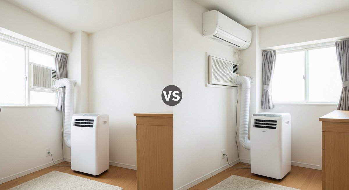 「普通のコンセントで使えるエアコン」には、大きく分けて「スポットエアコン(ポータブルクーラー)」と「窓用エアコン」の2種類が存在します。これらを選ぶ際の大きな分岐点は、設置に伴う簡易的な作業の有無です。壁掛けエアコンのような大規模な壁の穴あけ工事は不要ですが、どちらのタイプも熱を屋外に逃がすための準備が必要になります。