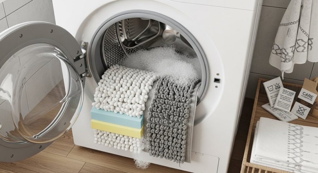 バスマットを洗濯機で洗うと洗濯槽が汚れる?素材別の注意点と正しい洗い方