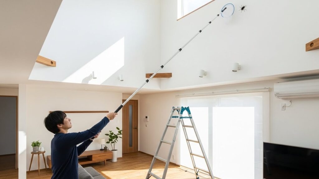 天井などの高い場所にいる虫に手が届かない時の安全な対処法や便利な道具をまとめました。掃除機や身近な物を使った捕獲アイデアから虫を寄せ付けない住まいの工夫まで詳しく紹介します。自分や家族の安全を守りつつ不快な虫を触らずに処理する方法を確認してストレスのないゆとりある暮らしを整えましょう。 -