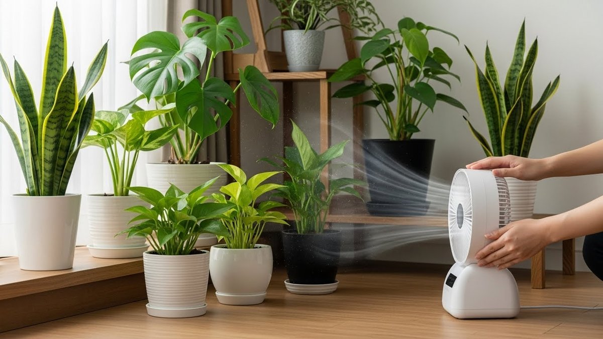 モンステラやペペロミアなど葉が薄い植物は、直接の強風で葉が傷みやすいです。こうした種には壁や天井に向けた反射風、または遠めに置いて低風量でゆっくり循環させる方法が向いています。