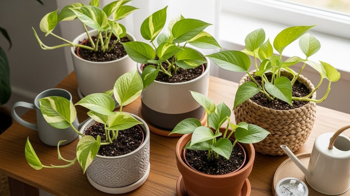 ポトスは表土が乾いてから水を与えることが基本です。寄せ植え相手の水やりサイクルが似ているかを確認してください。乾燥気味を好む植物と一緒にすると過湿になりやすく、耐湿性の高い相手と組むと安心です。