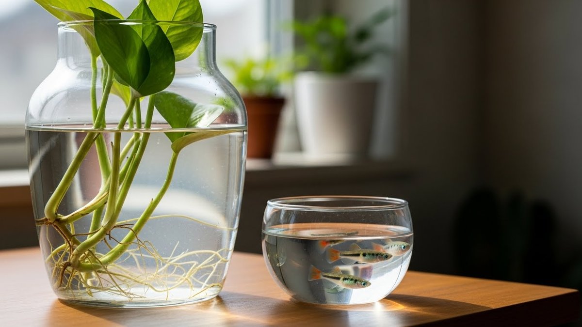 ポトスとメダカは一緒に育てると互いに良い影響を与えます。ポトスは水中で根を張って水質を安定させ、メダカは残餌や微生物を減らす役割を果たします。適切に管理すれば、両者の共生はとても長続きします。