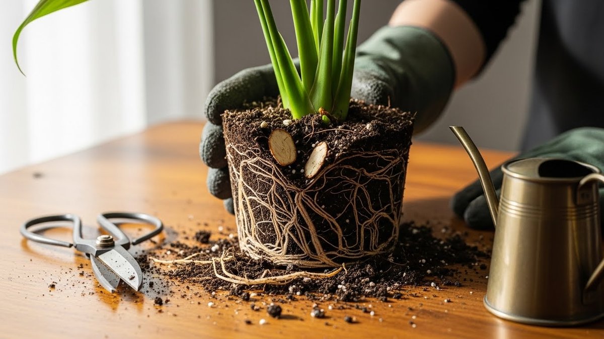 根の大半を失った場合は救命処置が必要です。まずダメージ部分を清潔にし、腐った根は取り除きます。排水性の高い清潔な培養土へ植え替え、余計な水分を避けながら保湿と通気を両立させます。