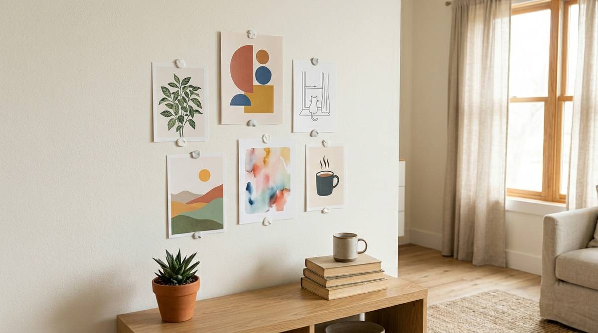 「ここに飾ろうかな?やっぱりあっちにしようかな?」という試行錯誤が、誰でも簡単に、しかも壁を汚さずに行えます。重い額縁とは違い、ひっつき虫を使う軽量なアイテムなら、気分に合わせて毎週のように